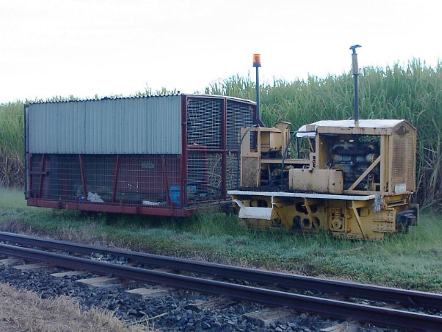 Little loco malcom more with the welding train in tow this is the last Malcom more still in cane use in australia