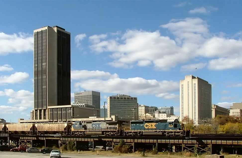 An empty, westbound grain train approaches AM Junction for a trip up the Buckingham Branch.