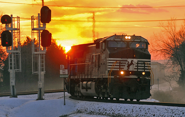 NS 227 diverges on to the B-Line, westbound, at Manassas just before dusk.