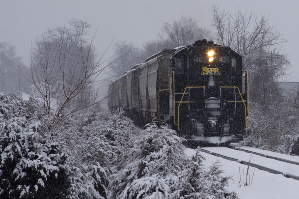 Shenandoah Valley Railroad's Valley local heads south through Verona on its way toward home in Staunton, during a Snow storm that dropped 2 feet of snow.