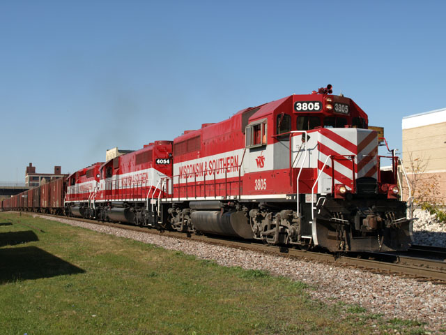 WSOR 3805 heads east towards Milwaukee depot in this unusual move on 10/28/2007