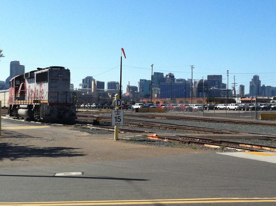 BNSF San Diego yard with GP60M doing switching for the vehicle train